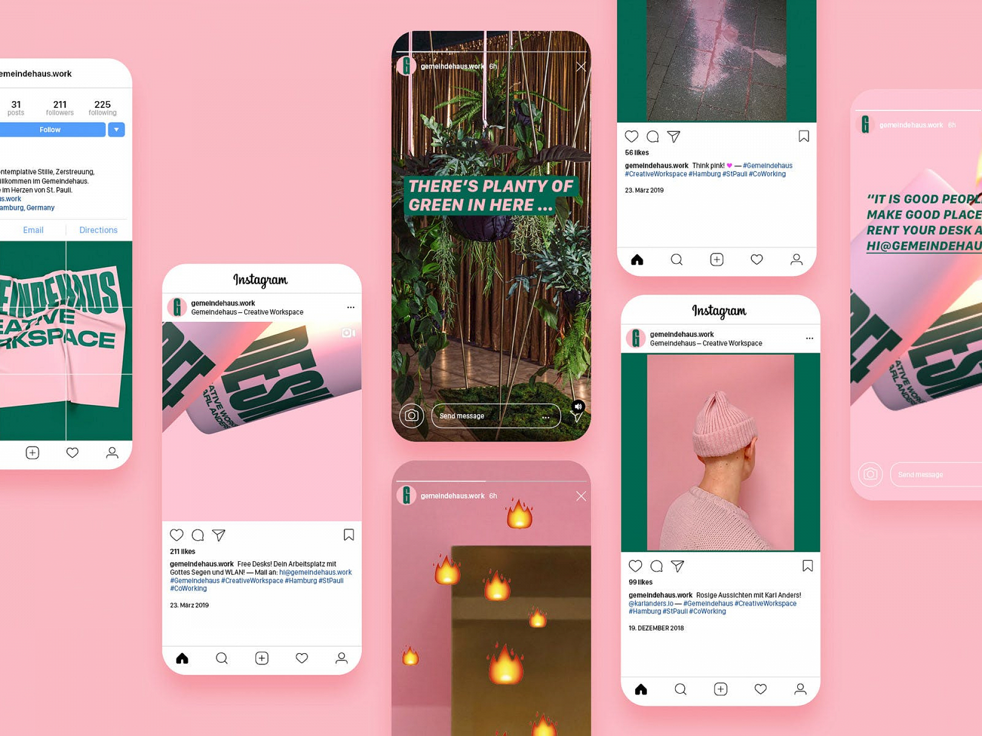 Das ehemalige Gemeindehaus in St. Pauli ist ein echter Klassiker. Das in den 70er Jahren im Brutalismus Stil entworfene Gebäude ist mit seiner kubistischen Architektur ein Hingucker in Hamburgs prominentestem Kiez. Im Januar 2019 öffnete es seine Pforten für Akteure aus der Kreativbranche wie Designer, Texter, Filmer und Fotografen, aber auch für Start Ups aus anderen Bereichen oder NGOs. Natürlich erhielt die Domain im Herzen von St. Pauli ein völlig neues Erscheinungsbild. Im Zuge der Umgestaltung wurde kein Touchpoint der Marke ausgelassen, um das avantgardistische look & feel zu transportieren. Coworking in stylish – und Denkmalschutz at its best!