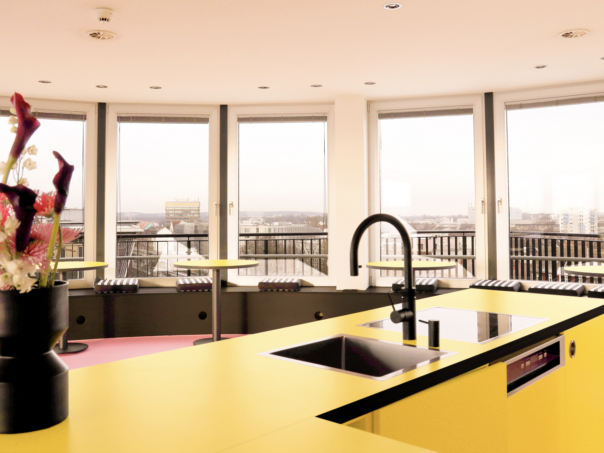 Das Kolorado ist (auch als Mietobjekt) offen für Mitarbeitende, Kund*nnen, Kollaborateur*innen und Freelancer*innen. Das Highlight: Die großzügige Dachterrasse mit atemberaubenden 360-Grad-Blick über ganz Hamburg.
