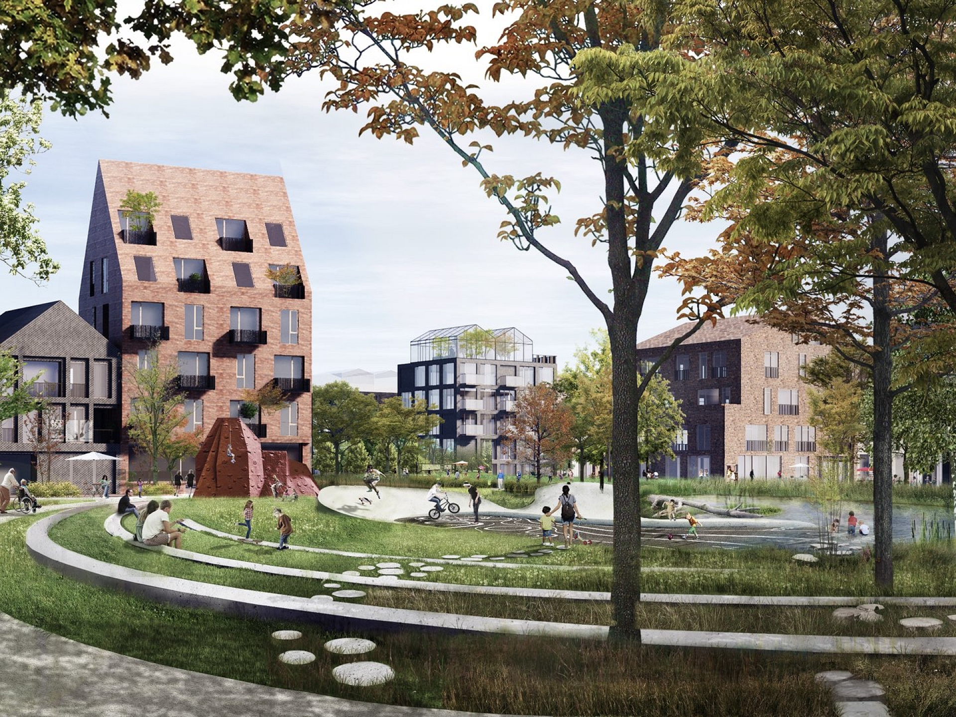Freiraum ist das verbindende Element. Herzstück ist der „Green Loop“, der die Grundstruktur Oberbillwerders vorgibt und zugleich sein Markenzeichen wird.